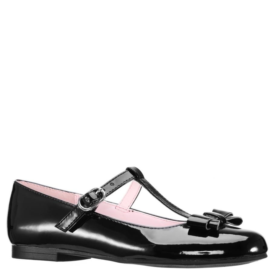 A classic T-strap dress shoe with a double bow detail on the vamp is perfect for your little lady. Available in vegan patent leathers.