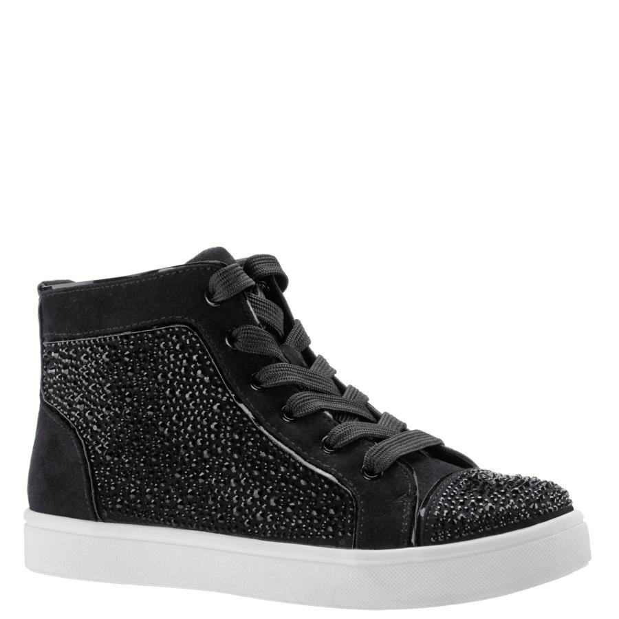 These sneakers are adorned with dazzling rhinestone embellishments and feature an inside zipper for easy on and off. This lace-up high top is where style and convenience unite to create a look that shines.