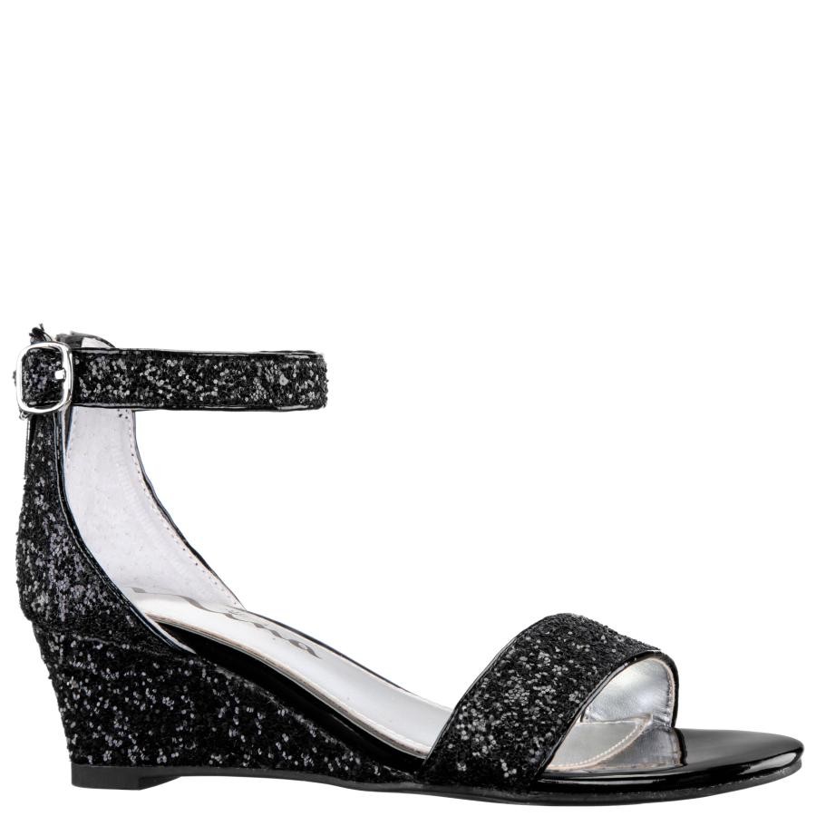 Step into our chunky glitter Kristina wedge sandal with easy on back zipper detail. This style is sure to make her day magical.