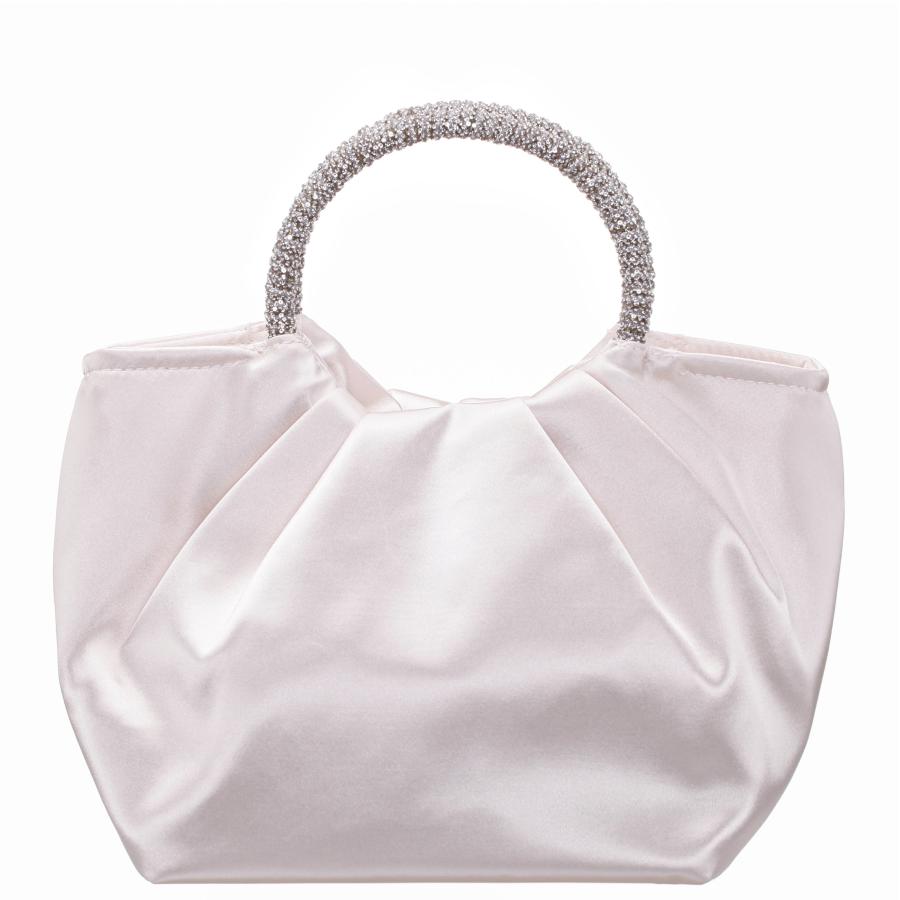The FANCY Crystal Handle Satchel is the perfect blend of elegance and modern luxury, making it an ideal accessory for evening events. This satchel features a dazzling crystal-encrusted handle that adds a glamorous touch. Available in BLACK, IVORY, LIGHT GOLD, and SILVER, this satchel comes in two stunning material options: Satin for a sleek, polished look or Reflective Suedette, a metallic fabric that offers a shimmering, eye-catching finish. The compact size is perfect for carrying your essentials, and the magnetic snap closure ensures everything stays secure. With versatile carry options, including a flat curb chain strap and a crystal-accented handle, the FANCY satchel brings both practicality and style to your wardrobe.