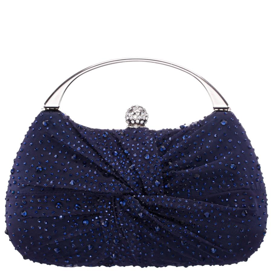 Women Nina Shoes Handbags | Brando Navy Chiffon/satin/glass Crystal Minaudiere