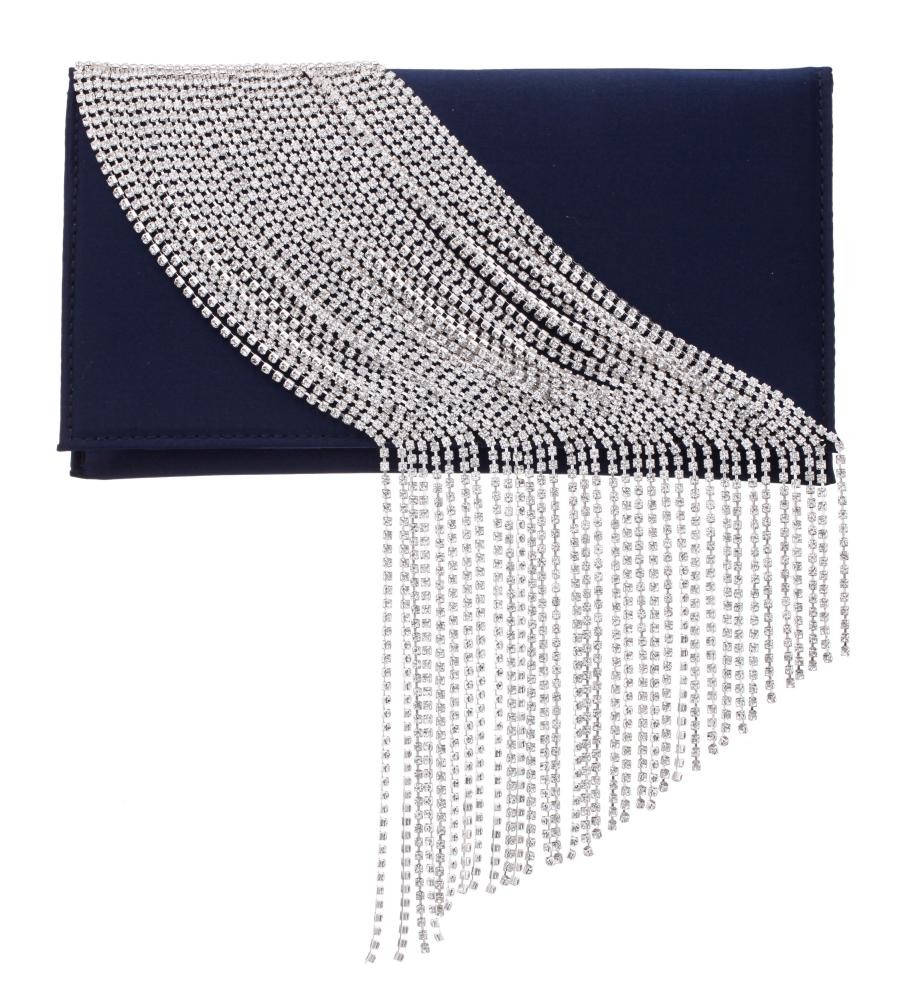 Women Nina Shoes Handbags | Carma Navy Crystal Chain Slim Envelope Clutch