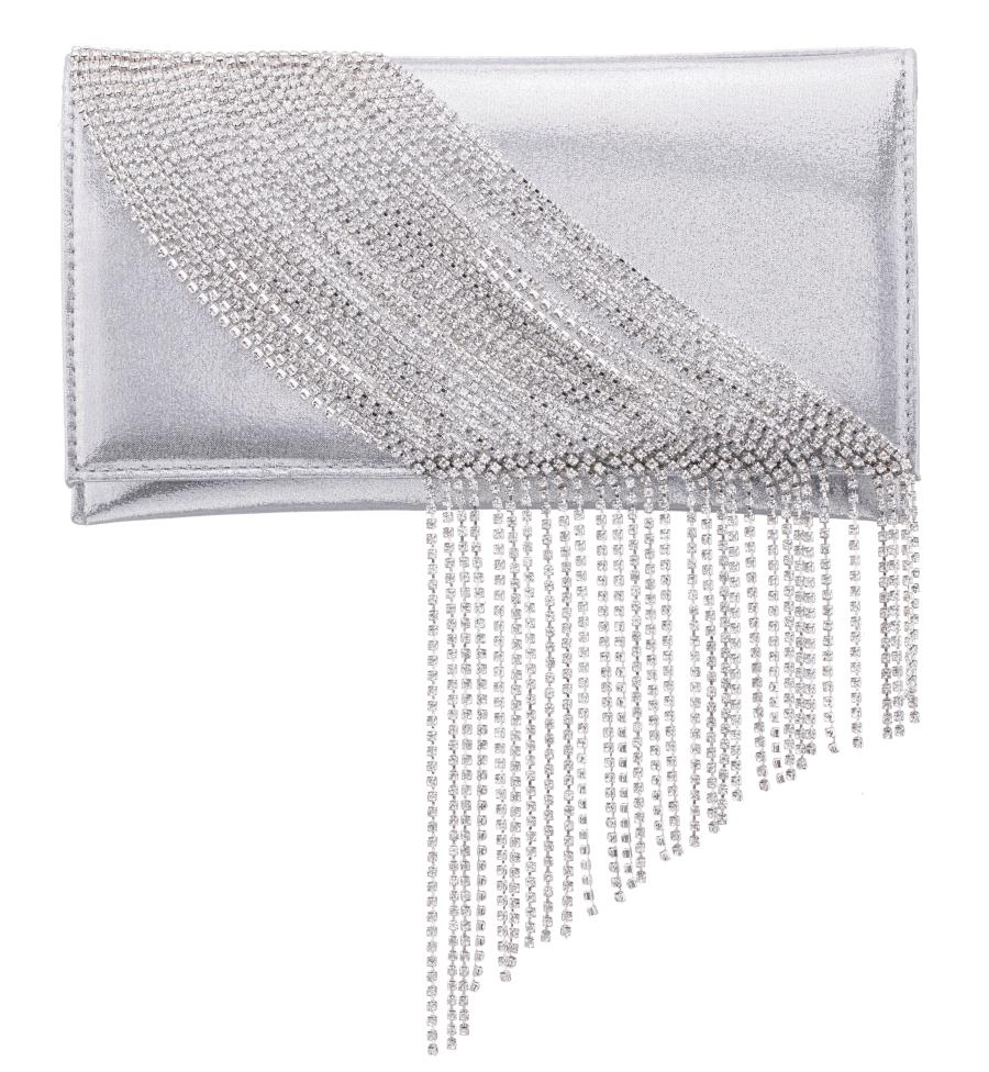 Women Nina Shoes Handbags | Carma Silver Crystal Chain Slim Envelope Clutch