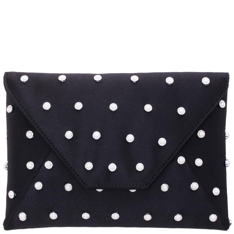 Women Nina Shoes Handbags | Cole Black/ivory Pearl Adorned Square Envelope Clutch