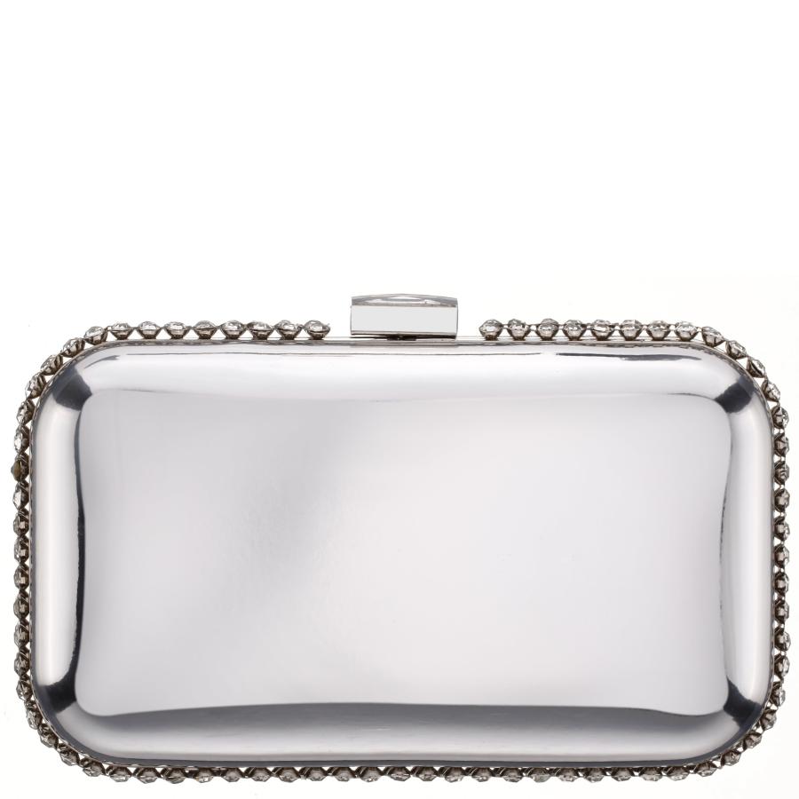 Women Nina Shoes Handbags | Dorsey Silver Metallic Minaudiere W/crystal Adorned Edge