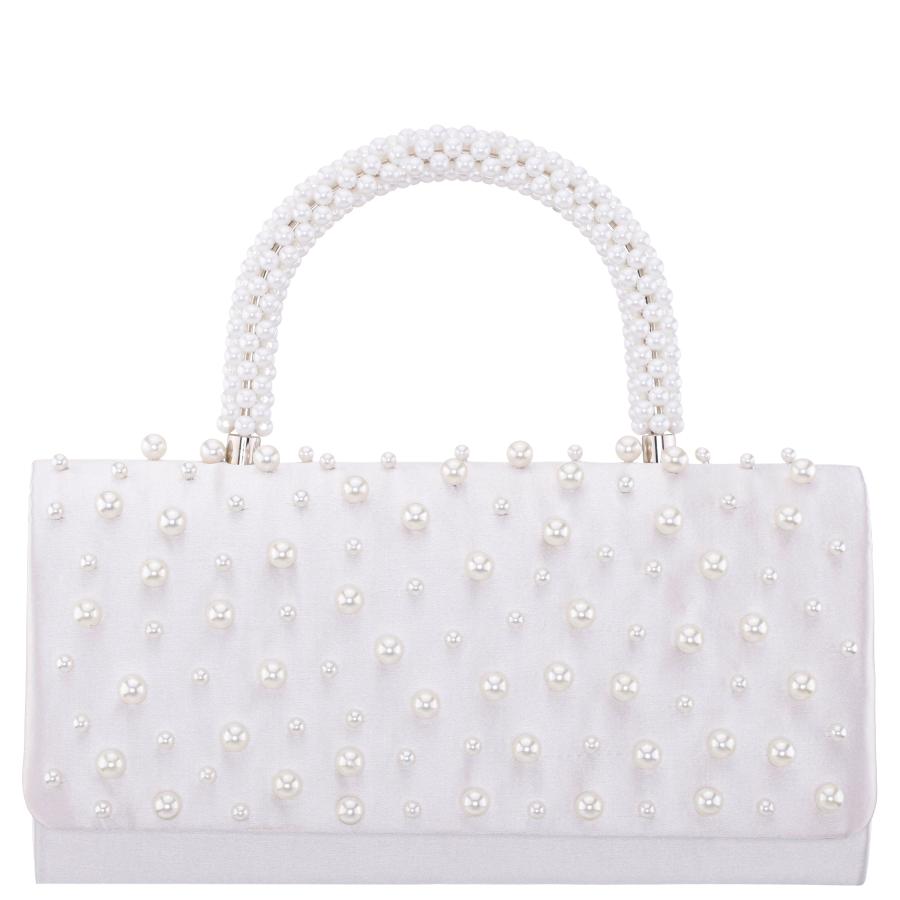 - Women Nina Shoes Handbags | Gaia Ivory Satin/plastic Pearl Handle Satchel
