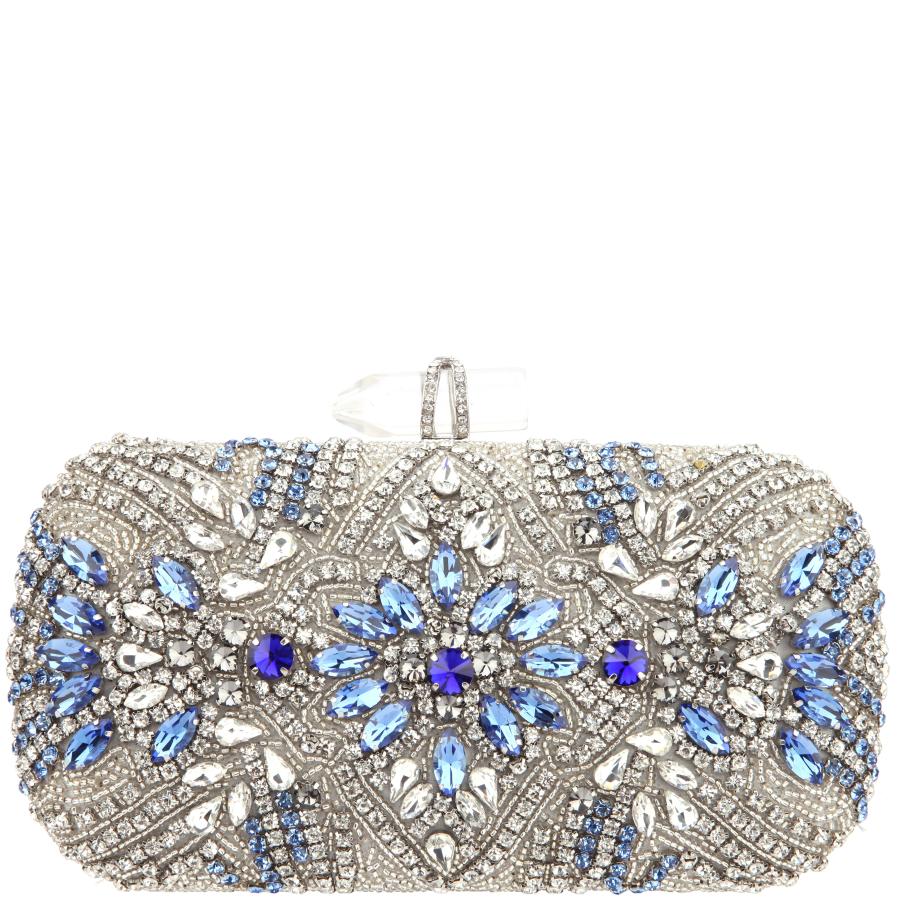 Women Nina Shoes Handbags | Gelsey Silver Crystal Embellished Minaudiere