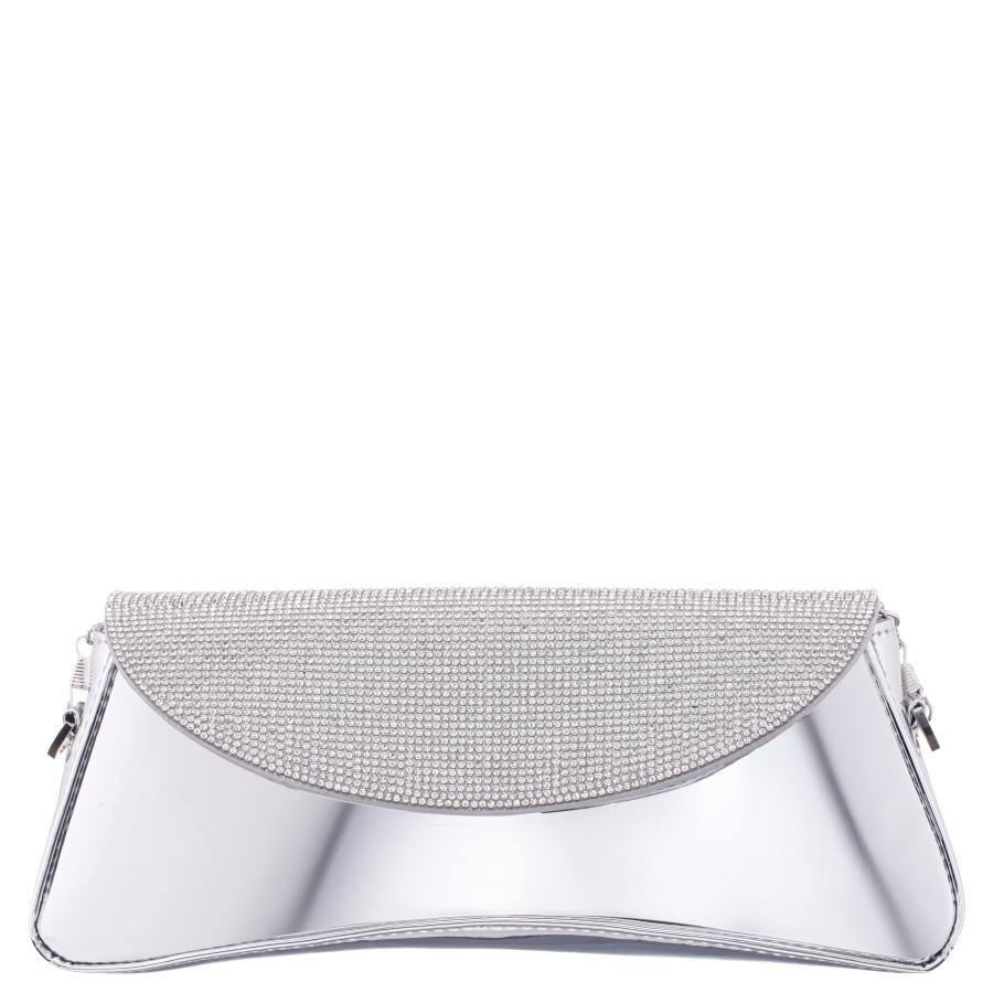 Women Nina Shoes Handbags | Joselyn Silver Crystal Flap Mirror Metallic Patent Clutch Bag