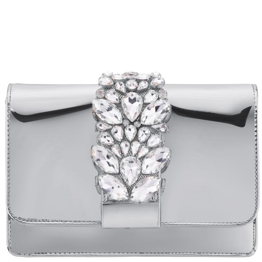 - Women Nina Shoes Handbags | Kaia Silver Patent Pu/glass Crystal Clutch