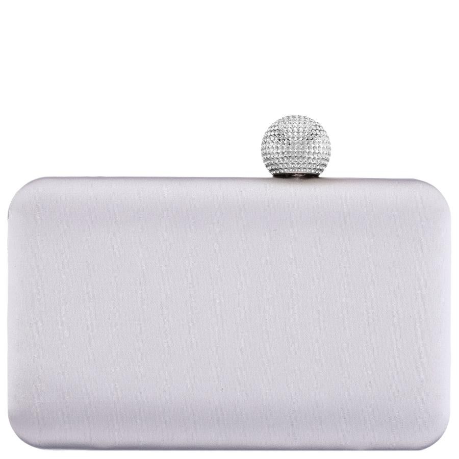 Women Nina Shoes Handbags | Kimberly Silver Satin Minaudiere With Crystal Clasp