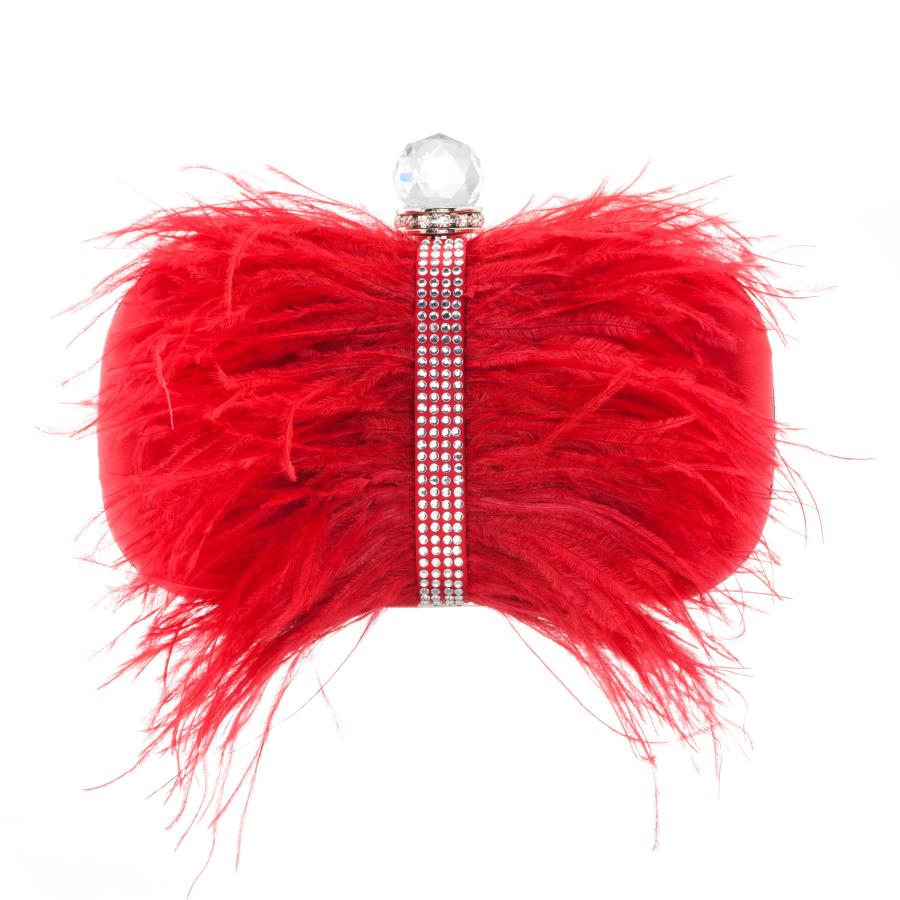 Women Nina Shoes Handbags | Lara Red Rouge Feather Embellished Minaudiere