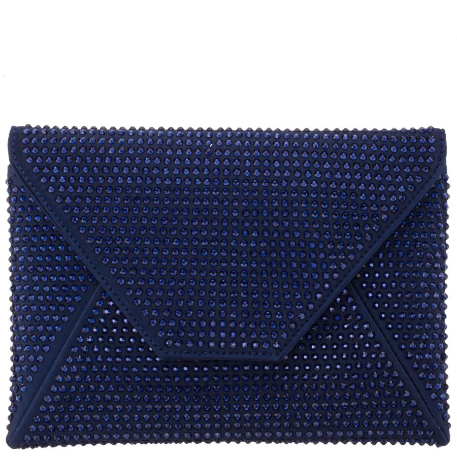 Women Nina Shoes Handbags | Lorna Navy Rystal Encrusted Square Envelope Clutch