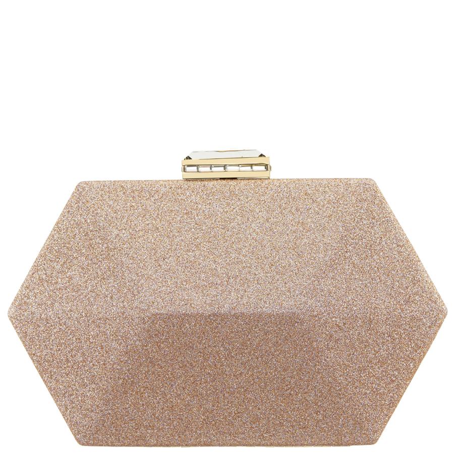 Women Nina Shoes Handbags | Molly Nude Geometric Metallic Glitter Minaudiere
