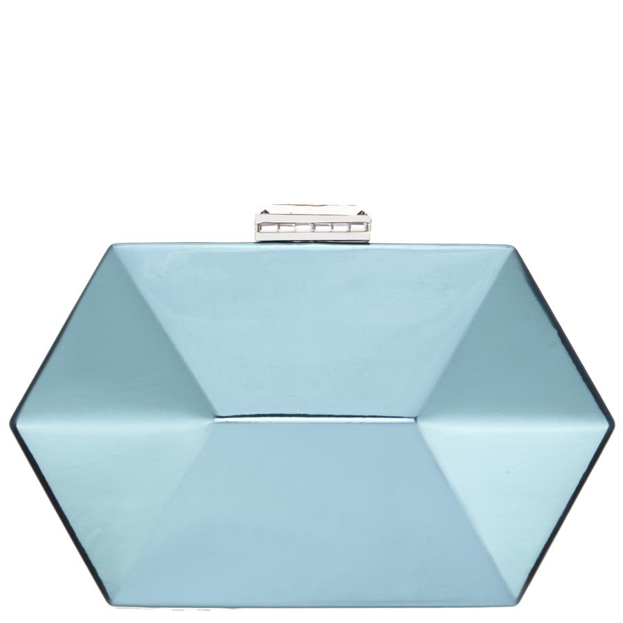 Women Nina Shoes Handbags | Molly Sea Green Geometric Mirror Metallic Patent Minaudiere