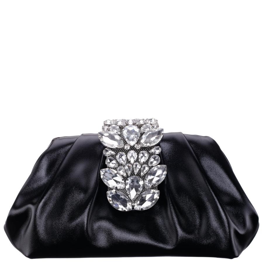 Women Nina Shoes Handbags | Myla Black Pu/glass Crystal Frame Clutch