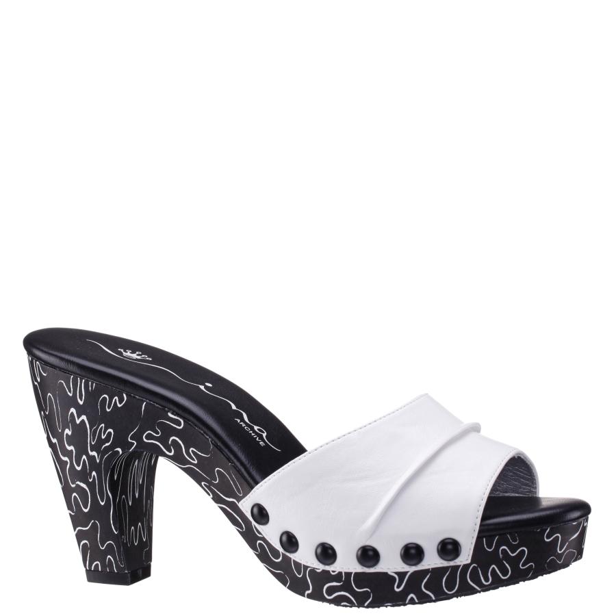 You are sure to impress with this Numbered Limited-Edition slide. In crisp white on black. With a softly pleated vamp in vegan sweet kid with contrasting nail head detail. An artisan hand dipped water process was used on each bottom to re-create the original freehand “squiggle” design on the sculptured one-piece platform, making each pair unique! With a full padded memory foam sock & nonslip rubber sole insert. Wear these to elevate any outfit!