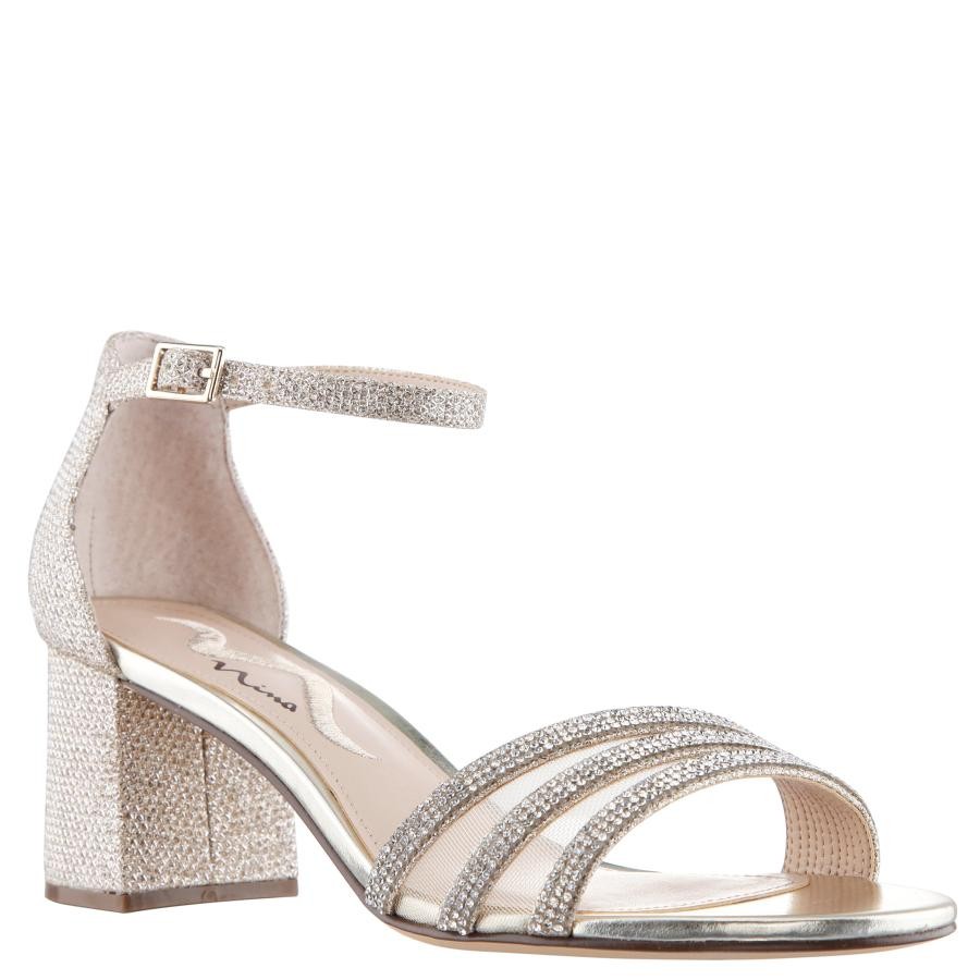 Delicate yet chic, with just enough sparkle on slender straps to catch the eye, Nagida is secured by a slim, adjustable ankle strap that compliments a textured block heel. Mesh inserts add to the polished, finished look that's perfect for the party season ahead.