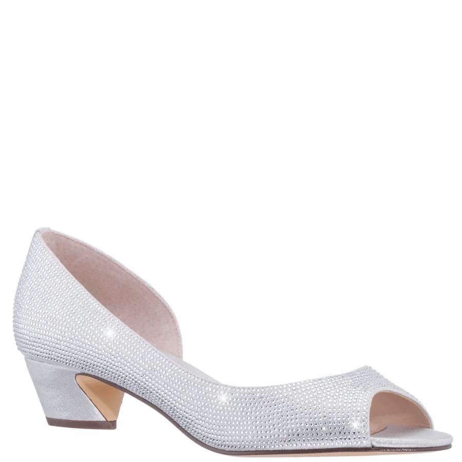 A stunning combination of elegance and ease for evening is available in wide-widths on a low-heel. Rossie by Nina mixes rows and rows of shimmering hot-fix faceted crystals to create a peep- toe-pump that is a must-have for any occasion where understated glamour is required.