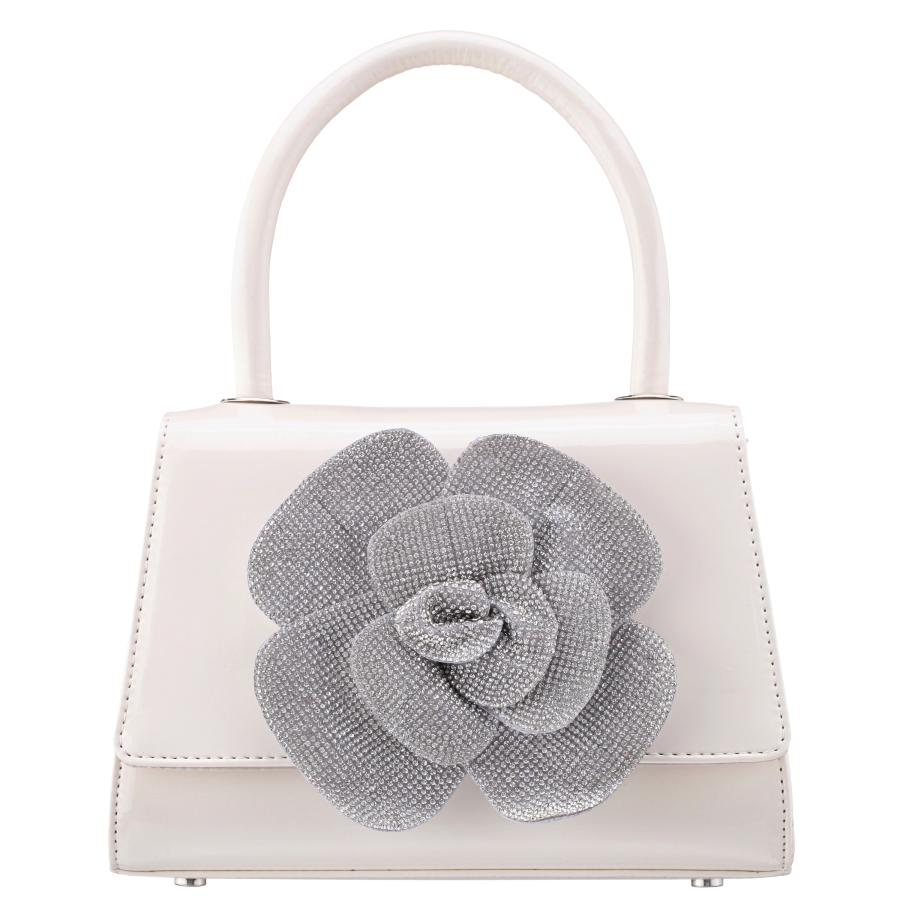 Women Nina Shoes Handbags | Aubrey Ecru Patent Pu/glass Crystal Handle Satchel