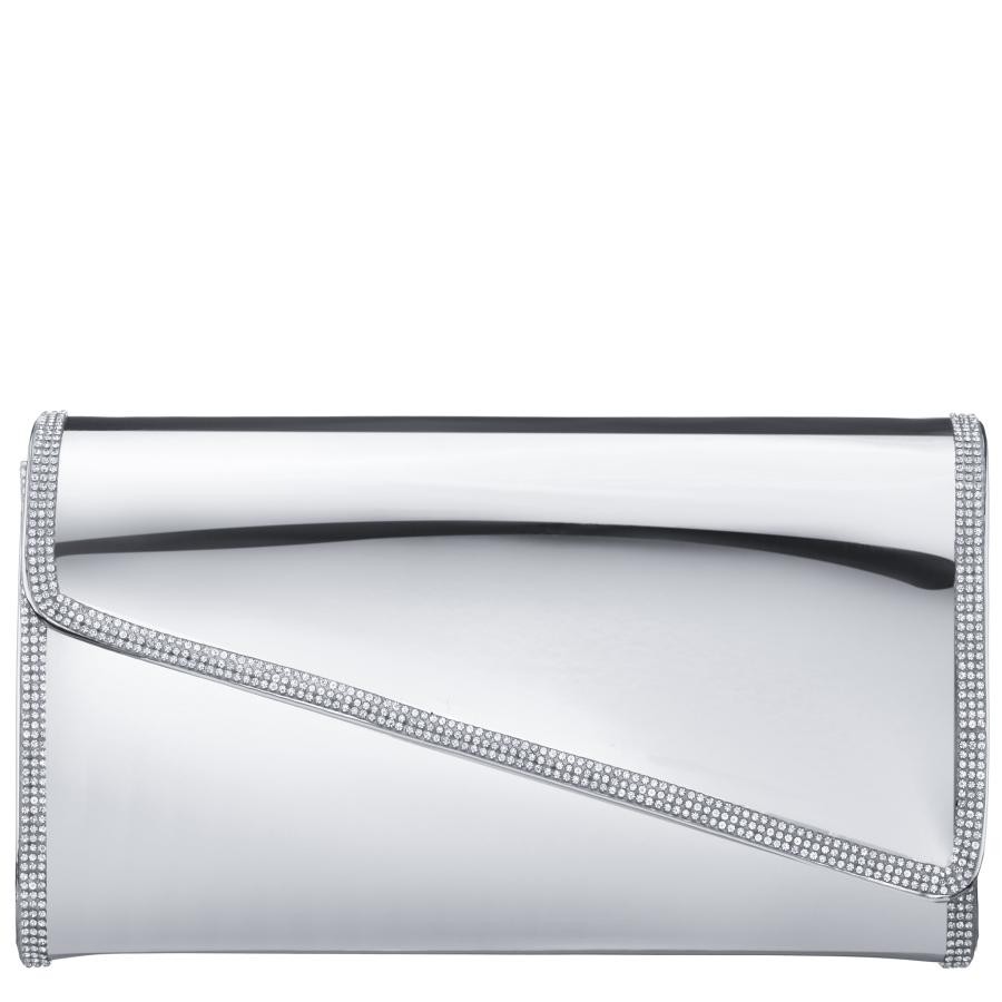 Asymmetrical Flap Crystal Trim Mirror Metallic Clutch