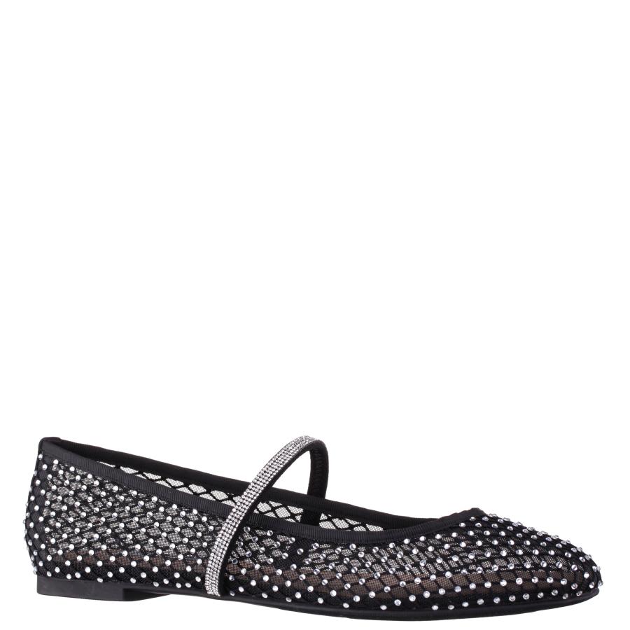Women Nina Shoes Flats & Wedges | Peggy Black Mesh With Clear Rhinestones Ballet Flats With Rhinestone Band