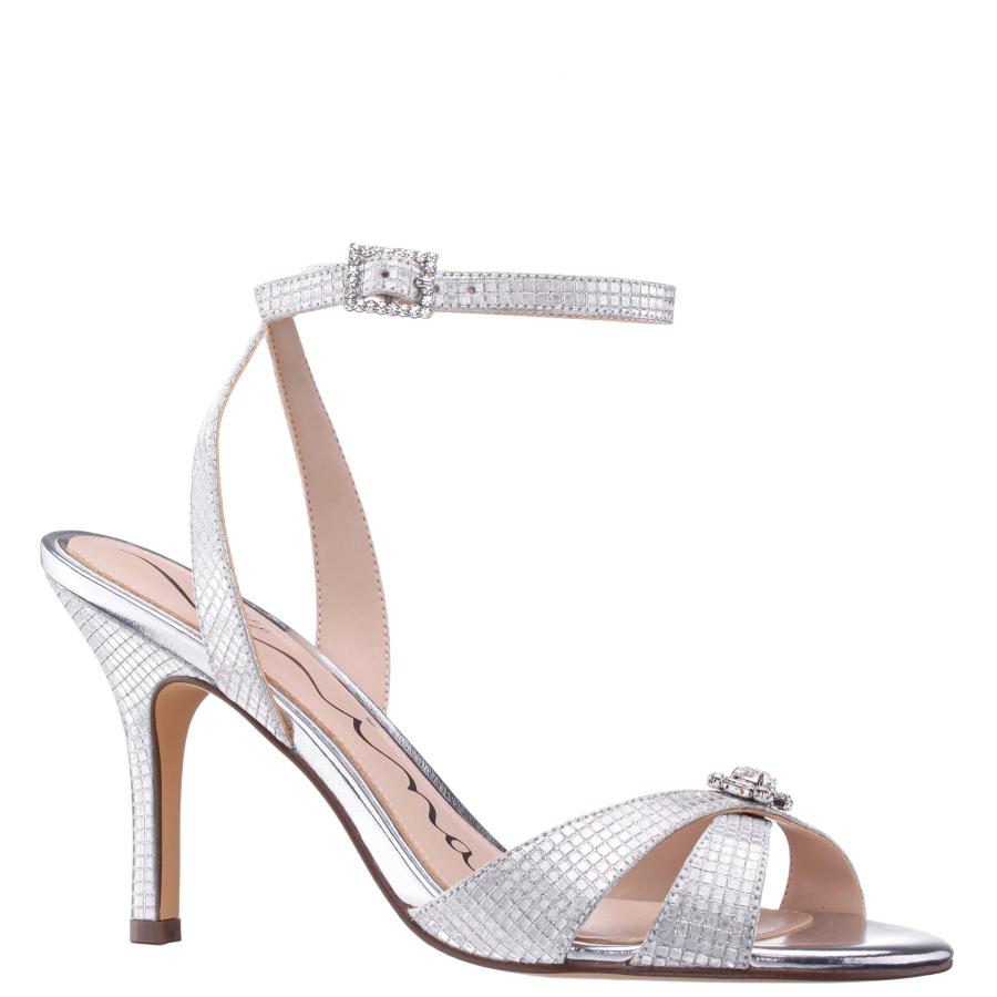 Women Nina Shoes Prom | Vinka Silver Textured Foil With Crystal Ornament High-heel Sandals
