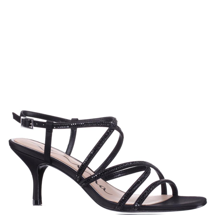 Women Nina Shoes Sandals | Briegh Black Satin Crystal Covered Strappy Mid-heel Sandals