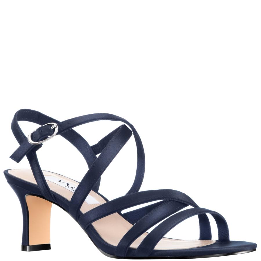 Women Nina Shoes Wide Widths | Genaya New Navy Satin Strappy Mid-heel dressy Sandal