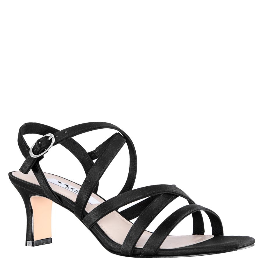 Women Nina Shoes Wide Widths | Genaya Noir Satin Strappy Mid-heel dressy Sandal