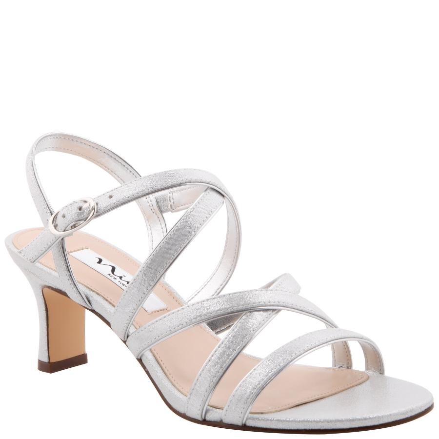 Women Nina Shoes Wide Widths | Genaya Silver Strappy Mid-heel dressy Sandal
