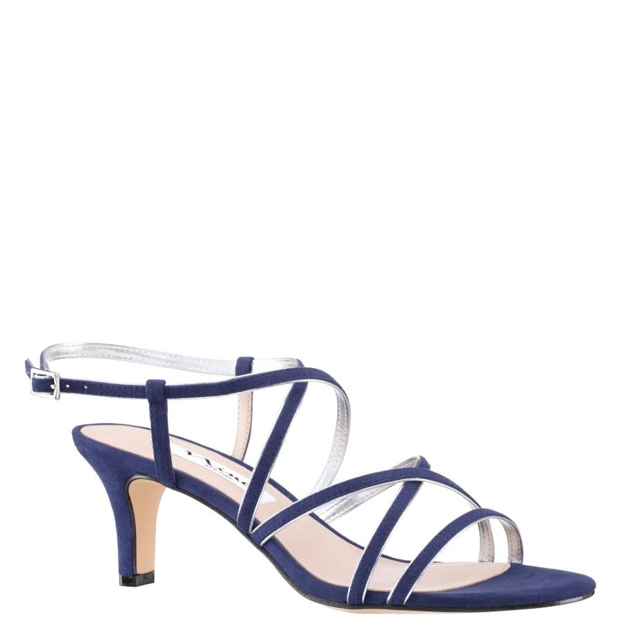 Women Nina Shoes Wide Widths | Neli Navy Suedette Strappy Mid-heel Sandal