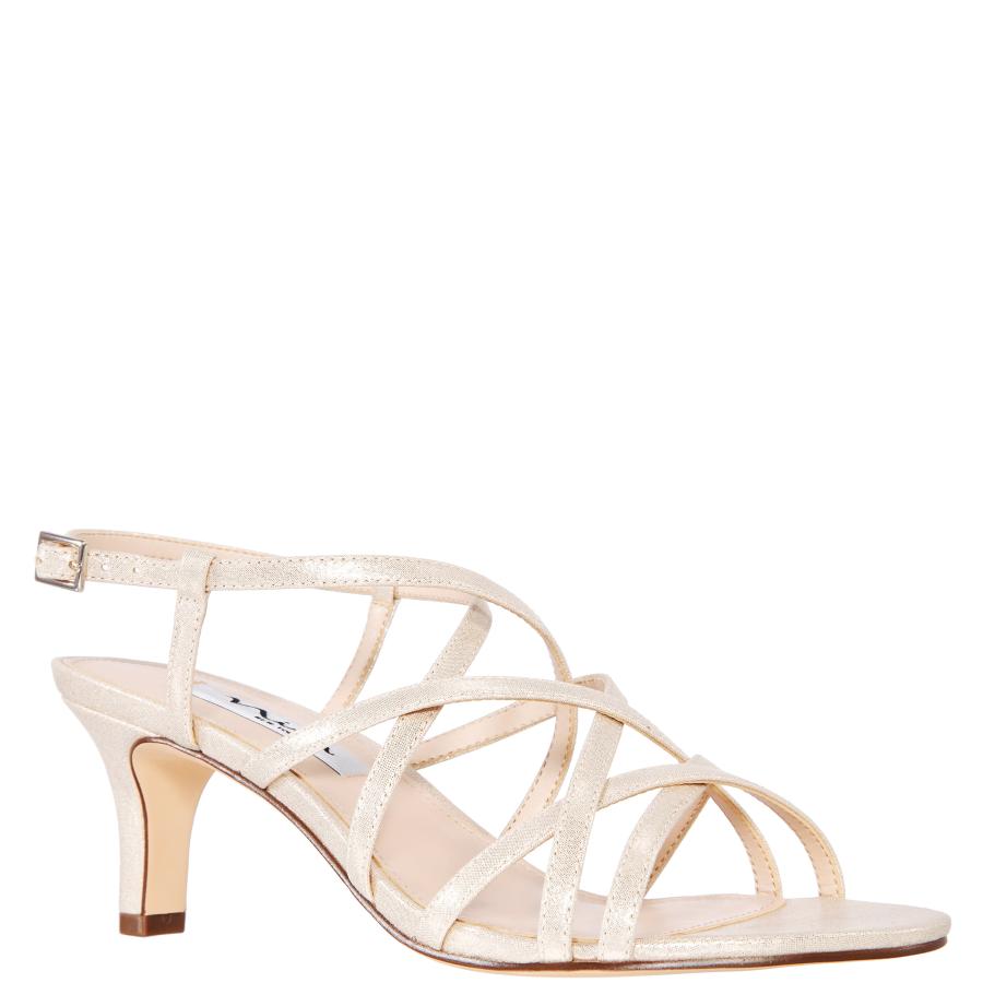 Women Nina Shoes Wide Widths | Neptune Platino Metallic Suedette Strappy Mid-heel Dressy Sandal