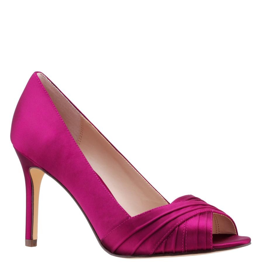 Pleats of luxurious satin criss-crossing on a peep-toe, make Rhyanna by Nina a sophisticated choice for any special event. An easy pump to dress down or dress up.